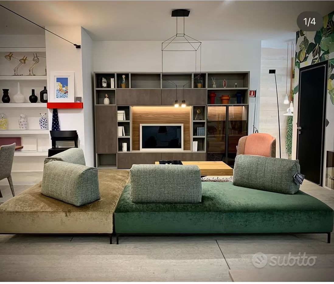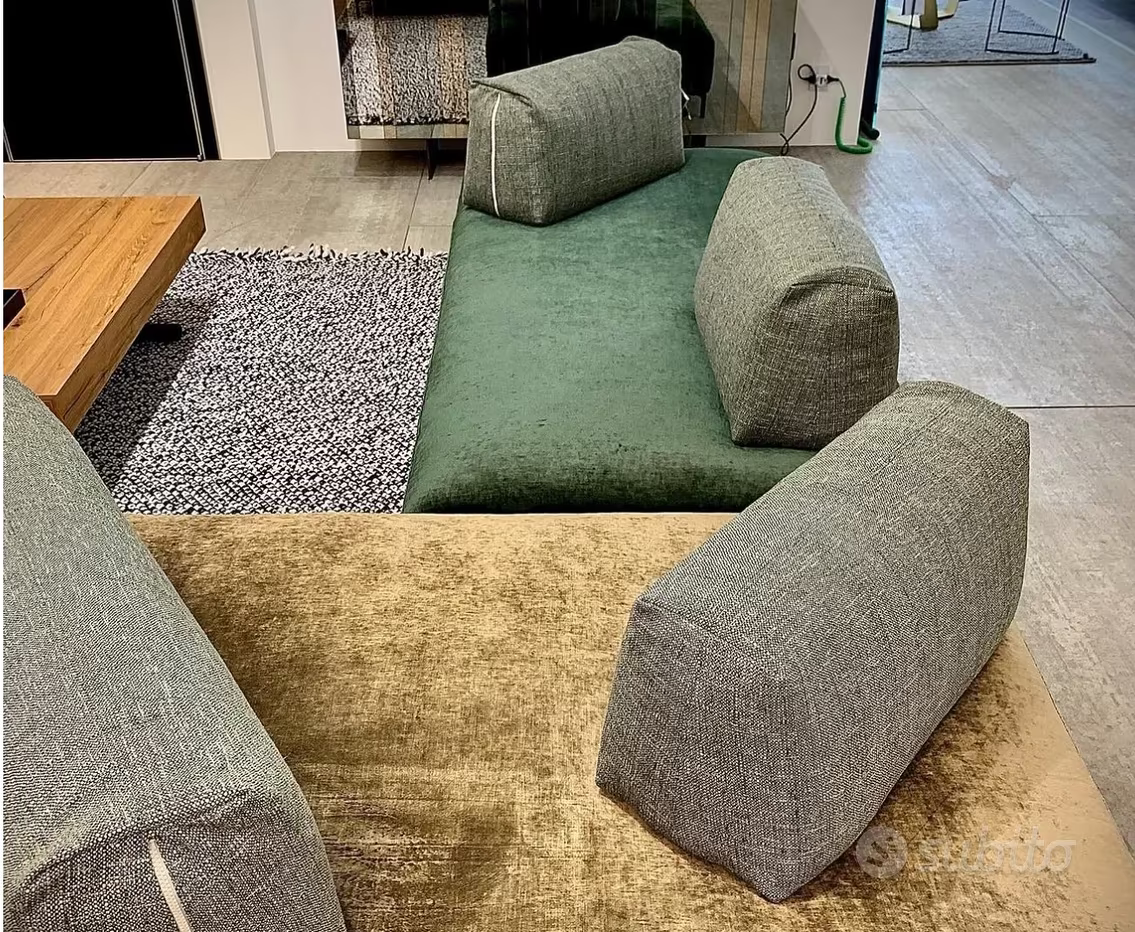Divano composto da: un elemento seduta dimensione 224x109x41cm, rivestito in tessuto TREND 068 Verde scuro, piedi in testa di moro un elemento seduta dimensione 199x124x41cm, rivestito in tessuto TREND 039 marrone, piedi in testa di moro 1 cuscino seduta con cerniera zip da 75cm, in tessuto TIME 035 Verde Bosco 1 cuscino seduta con cerniera zip da 105cm, in tessuto TIME 035 Verde Bosco 1 cuscino seduta da 75cm, in tessuto TIME 035 Verde Bosco 1 cuscino seduta da 105cm, in tessuto TIME 035 Verde Bosco