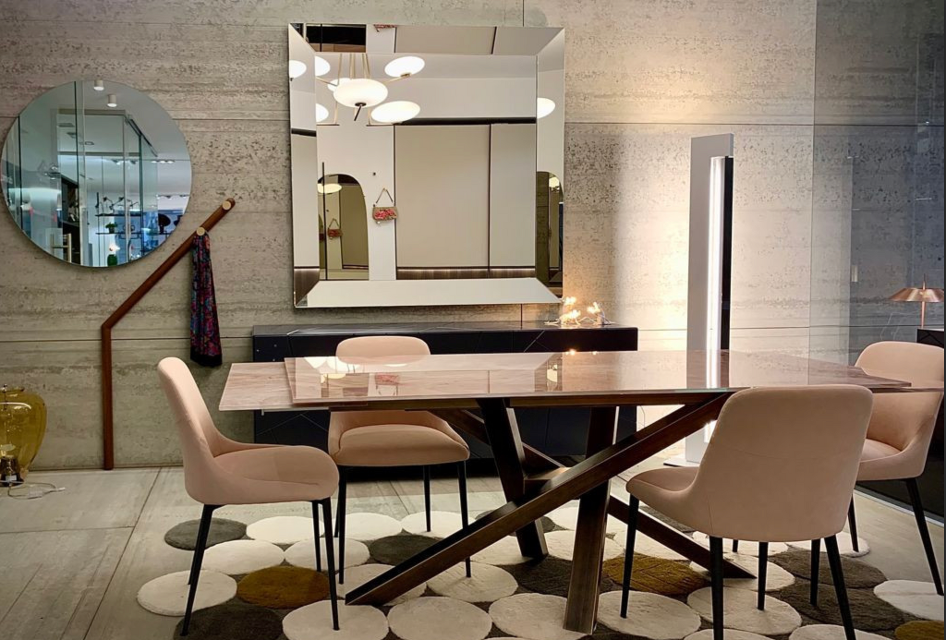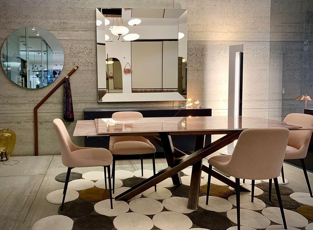 Specchio con cornice perimetrale in finitura specchio. Dimensioni 155x155 cm